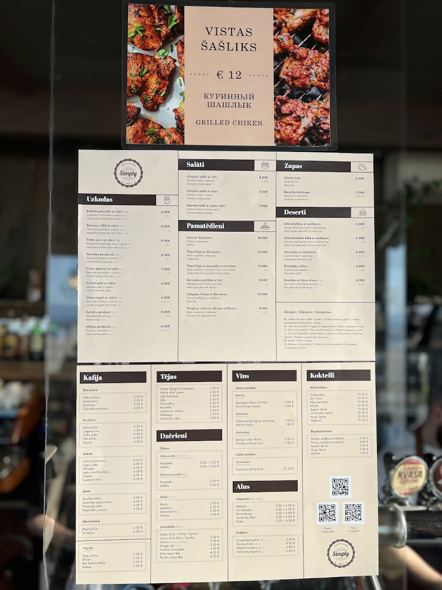 Guests can find a variety of hot beverages to suit the moment—try a classic Black Americano, a rich Melnā Kafija, or indulge in one of the unique hot wines like Glühwein or Горячее Вино on cooler days. For those seeking a lighter refreshment, tea and carefully crafted spritz cocktails, including the Limoncello Spritz, offer a gentle touch of flavor.